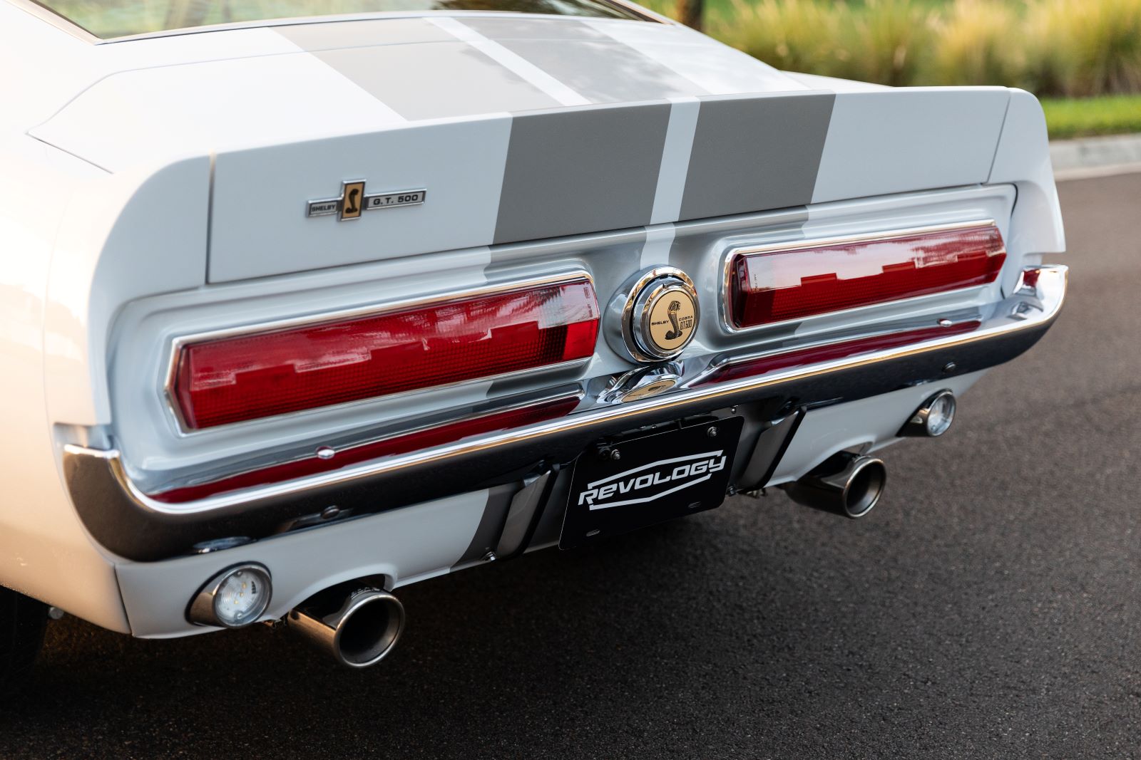 If you’d like to have a model similar to this, but with different options, the Revology Cars staff can help you place a custom order. If this car has everything you want in a classic-looking new performance car, this Carrera White Metallic 1967 Shelby GT500 Fastback with Silver Frost Metallic Le Mans stripes is $352,900 and ready to enjoy now!