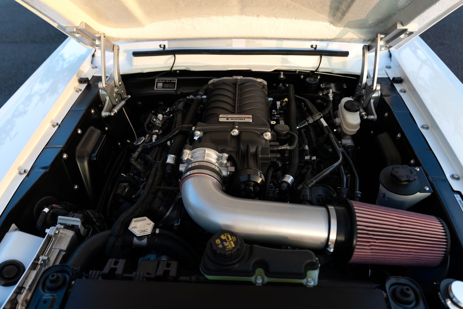 For drivetrain, this Shelby is powered by a Roush supercharged 710hp Ford Gen 3 5.0 Ti-VCT “Coyote” DOHC V8 engine. Power is transferred through a T56XL 6-speed manual transmission to the precision-engineered Ford 8.8” Traction-Lok limited slip differential, 3.73 Ford engineered gear set, through a carbon fiber driveshaft.