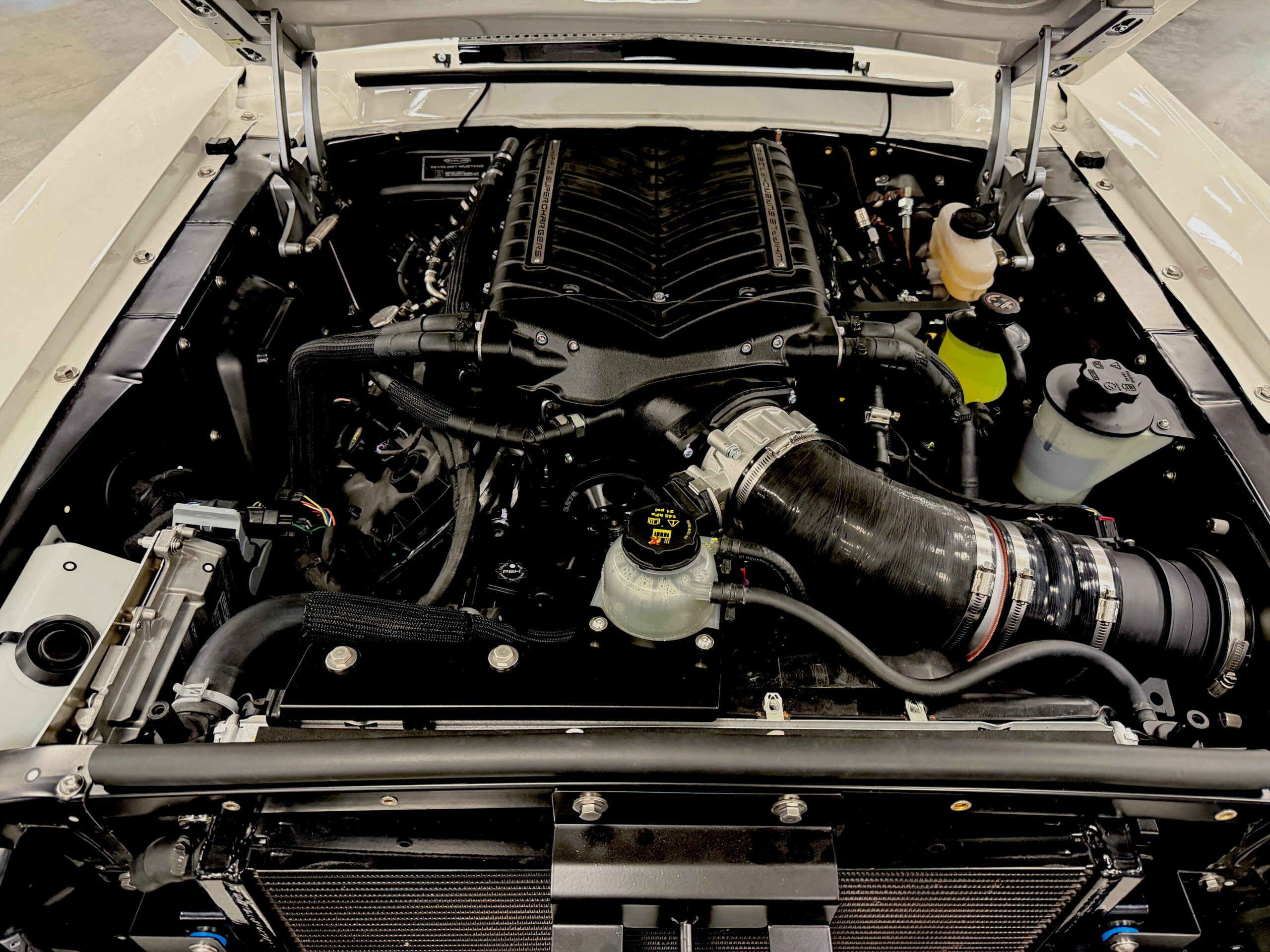 This is a brand-new Revology 1968 Mustang GT 2+2 Fastback Cobra Jet—an extraordinary blend of classic design and modern engineering. Under the hood lies a Whipple-supercharged, 710-horsepower Ford Gen 3 5.0L Ti-VCT “Coyote” DOHC V8, delivering breathtaking performance. Power is routed through a 10R80 10-speed automatic transmission and carbon fiber driveshaft to a precision-engineered Ford 8.8” Traction-Lok limited-slip differential. A hydraulically assisted twin-disc clutch ensures both high-performance capability and smooth, effortless operation.